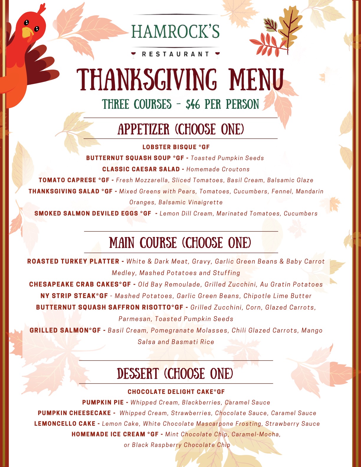 Thanksgiving at Hamrock’s 2025 Join us on Thanksgiving Day from 12-6pm Click here to view our Thanksgiving Family Meals menu.